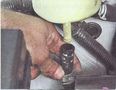 2. Подставьте под бачок гидроусилителя емкость для сбора вытекающей жидкости.