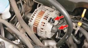 3. Если и после натяжения ремня сигнальная лампа все равно горит, проверьте провода, подсоединенные к «плюсовой» клемме аккумуляторной батареи