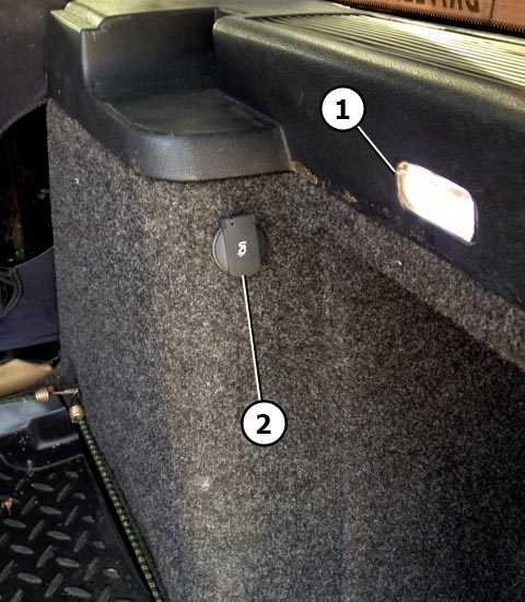 На части автомобилей предусмотрено освещение открытого багажника изнутри плафоном 1. В автомобилях с кузовами универсал и седан в багажнике установлена розетка 2.