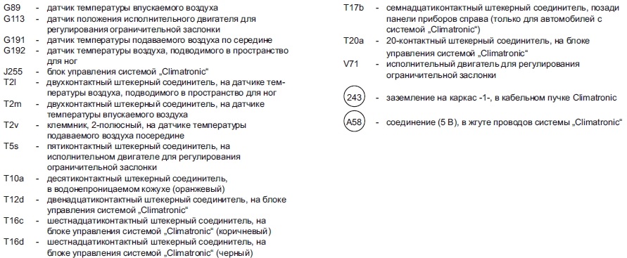Блок управления обогревом передних сидений, обогреваемое сиденье пассажира, сидящего рядом с водителем Skoda Octavia 2004 - 2012. Схема