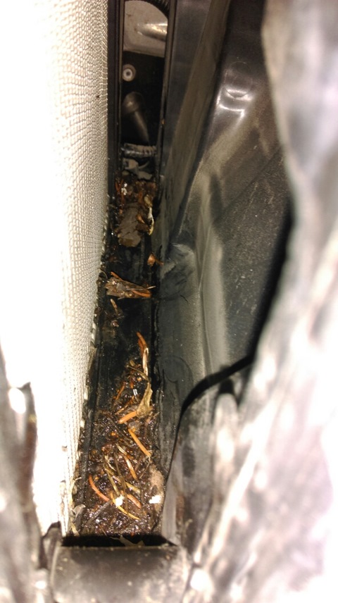 Решил прочистить дренажную трубку, туда забились еловые палки и прочий мусор. Ну и не оставил без внимания и внутренность. Вычистил подручными средствами всю грязь.