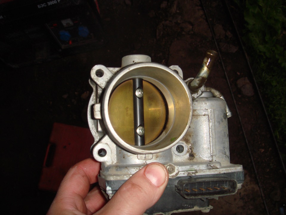Далее откручиваем 4 болта крепления самой заслонки, снимаем с нее фишку питания. И вот тут начинается самое не легкое дело. Нужно умудрится подлезть пассатижами и снять шланги подводящие антифриз к заслонке. Очень странно, но в этот раз у меня это получилось очень быстро. Кстати лучше за ранее подготовить что-нибудь, чем заткнуть снятые шланги, чтоб не вытекал антифриз. Я использовал 2 сверла подходящего диаметра. Вот только подготовил я их уже после того как вытекло немного антифриза.