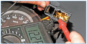 Присоединяем «плюсовой» вывод тестера к выводу «4» колодки жгута проводов, а «минусовой» — к «массе».
