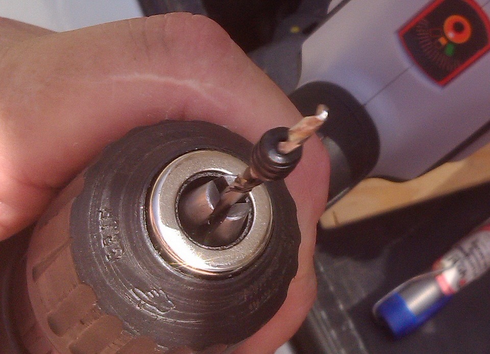 3. Вытолкнул резиновую заглушку, в которой сначала шилом, а затем сверлом, проделал отверстие.