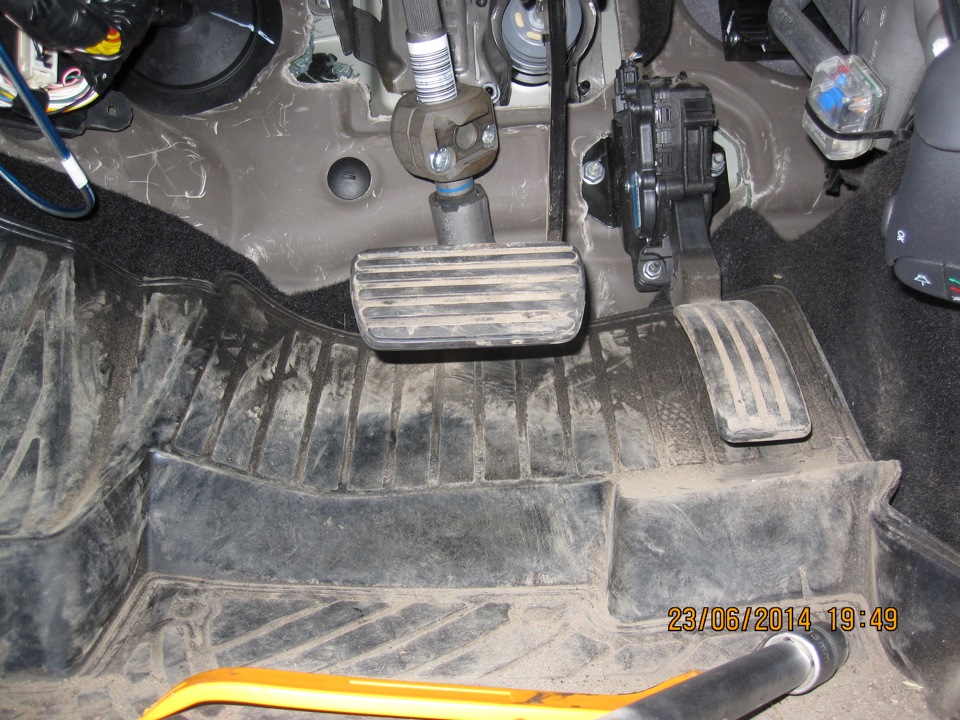 Но вот еще чуть чуть и решил над педалью газа тоже поэкспериментировать. Подложил две шайбы под нижнее крепление корпуса педали. Шайбы брал в комплекте болтиков и гаек м6, соответственно внутр 6мм, внешне около 15, толщина около 1,5мм