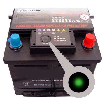 2. Затем посмотрите на индикатор заряда аккумулятора. Если в окошке черный цвет, срочно зарядите аккумулятор до закрашивания индикатора в зеленый цвет.