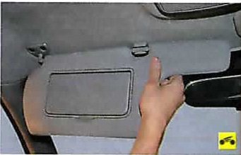 Противосолнечный козырек может выводиться из держателя поворотом на шарнире вбок.