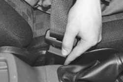 Для того чтобы отстегнуть ремень, нажмите на кнопку замка, придерживая ремень. Отпустите ремень — он автоматически намотается на катушку.
