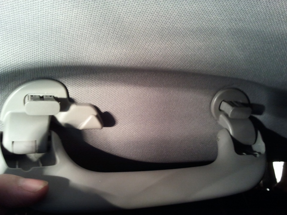 11. Теперь наш потолок держится только на четырёх ручках для пассажиров и (или) ещё футляр для очков. Установленная ручка выглядит так.