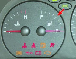 2 – указатель уровня топлива электромагнитного принципа действия. Красная зона означает резервный остаток топлива.