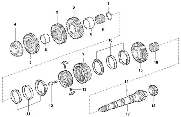 1 – дистанционное кольцо шестерни 2-й передачи;