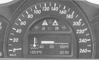 Если неисправности возникли во время движения, индикация (2) появляется ещё раз, когда ключ в выключателе зажигания поворачивается в положение 0 или вынимается. Повторную индикацию неисправностей на приборной доске можно вызвать нажатием кнопки сброса показаний.