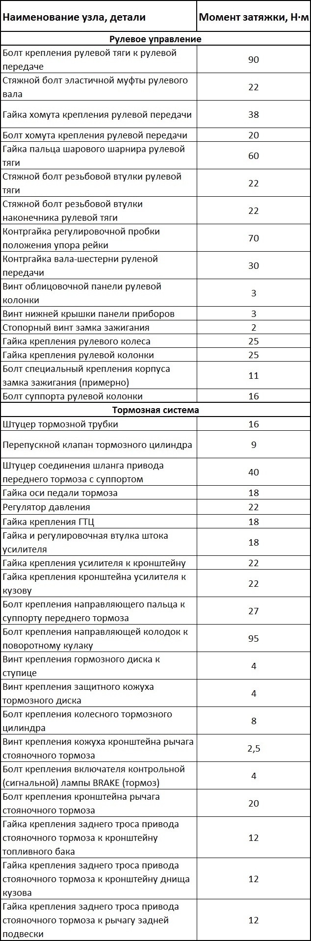 Ниже приведены на Дэу Сенс моменты затяжки резьбовых соединений деталей механизмов для обеспечения их работы в течение нормативного срока эксплуатации и безопасности эксплуатации автомобиля. Момент затяжки Сенс можно осуществить с помощью динамометрического ключа.
