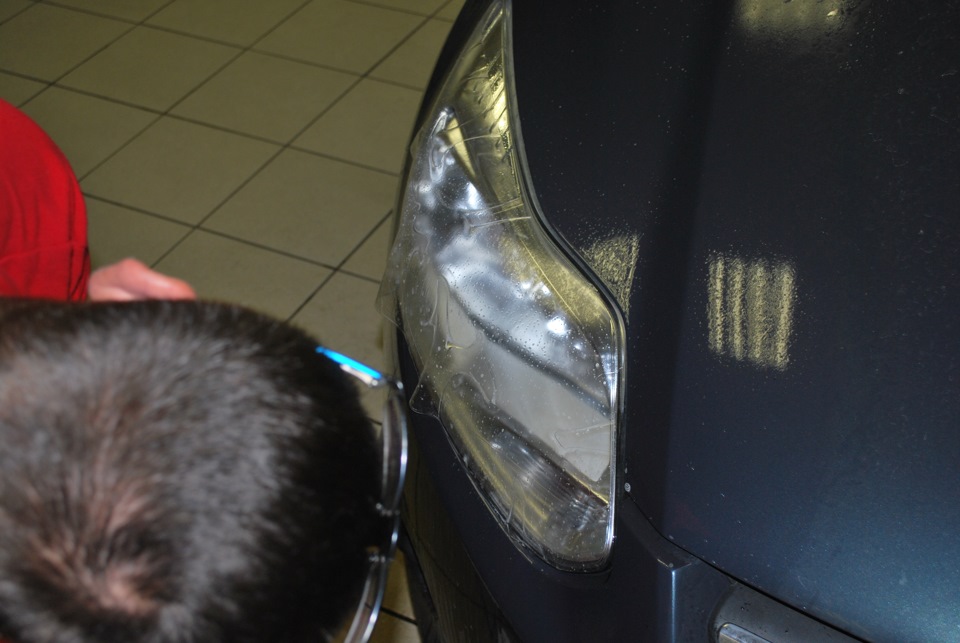 На фаре образовалась ссадина, которая была видна. Полировка фары не дала нужного мне эффекта, и я отложил этот вопрос на потом.