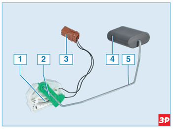Датчик указателя уровня топлива прикреплен к корпусу топливного модуля. Датчик указателя уровня топлива представляет собой переменный резистор, сопротивление которого зависит от перемещения поплавка. Управляет работой указателя уровня и сигнализатора минимального уровня топлива в баке.