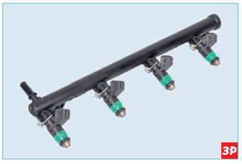 Топливо под давлением подается во внутреннюю полость рампы, а оттуда – через форсунки во впускной трубопровод.