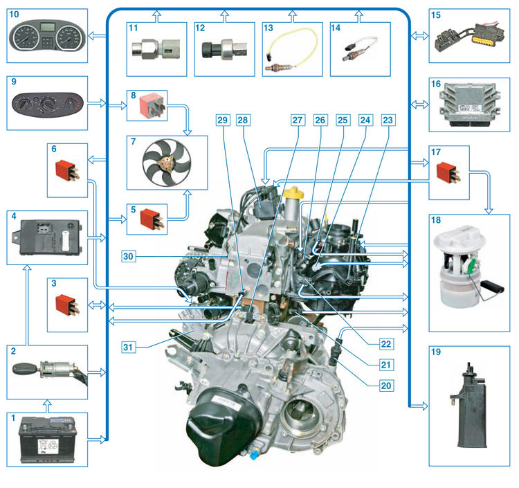 Элементы электронной системы управления двигателем 1,6 (16V)