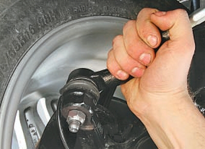 3. Проверьте наличие люфтов в шаровых шарнирах (наконечников) рулевых тяг. Наконечники, шарниры которых имеют ощутимый люфт, замените. Проверьте также надежность затяжки гаек пальцев шаровых шарниров наконечников рулевых тяг.