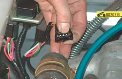 На автомобили на картере сцепления с правой стороны устанавливают стартер 42.3708, представляющий собой электродвигатель постоянного тока с электромагнитным возбуждением. Стартер имеет четыре полюса. Сверху на корпусе стартера установлено тяговое реле, имеющее две обмотки: втягивающую и удерживающую. При повороте ключа в замке зажигания в положение "II" включается цепь питания обмоток тягового реле, при этом якорь реле втягивается и через рычаг вводит в зацепление шестерню стартера с зубчатым венцом маховика двигателя. В конце хода якорь включает цепь питания стартера и одновременно отключает втягивающую обмотку реле (питание подается только на удерживающую обмотку). При возврате ключа в замке зажигания в положение "I" отключается цепь питания стартера и удерживающей обмотки и под действием пружины якорь выводит шестерню стартера из зацепления с зубчатым венцом маховика.