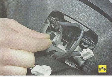 6. Отсоедините от модуля подушки безопасности провод выключателей звуковых сигналов.