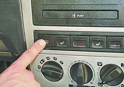 Для того чтобы не повредить нити обогревателя, не используйте для очистки внутренней стороны заднего стекла скребки и другие острые предметы, а также моющие средства с абразивными веществами. 2 – выключатель обогрева левого переднего сиденья. При нажатии на кнопку выключателя (ключ в выключателе зажигания должен находиться в положении «II») включается обогрев левого переднего сиденья, одновременно в кнопке загорается контрольная лампа. При повторном нажатии на кнопку обогрев выключается;