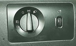 Для включения противотуманных фар поверните рукоятку переключателя в положение и вытяните ее на две позиции.