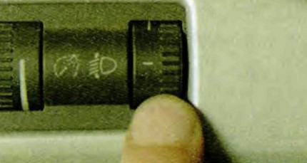Для включения противотуманных фонарей вытяните рукоятку из положения 1 или 2 на себя до первого щелчка - в переключателе загорится контрольная лампа.