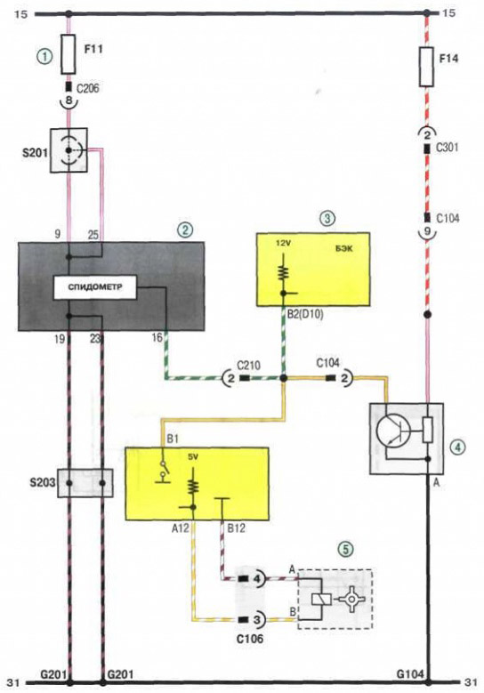 5 - датчик скорости автомобиля (автомобили, оснащенные автоматической коробкой передач).