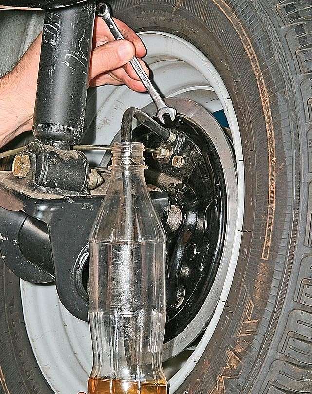 12. Прокачайте, как описано выше, тормозной механизм левого переднего колеса.