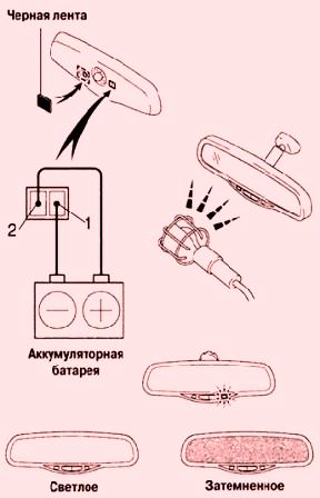 Заклейте черной лентой (см. рис. 4) датчик света внутреннего зеркала заднего вида.