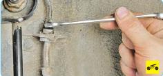 - 9. Нажмите (или попросите нажать помощника) на педаль тормоза до упора. Если на шланге появились вздутия, значит, порвались нити каркаса шланга и его необходимо заменить (см. «Замена тормозных шлангов»).