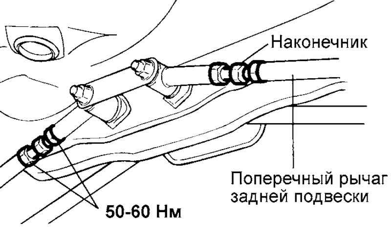 Регулировка схождения задних колес производится изменением длины (поворотом наконечников) поперечных рычагов подвески.