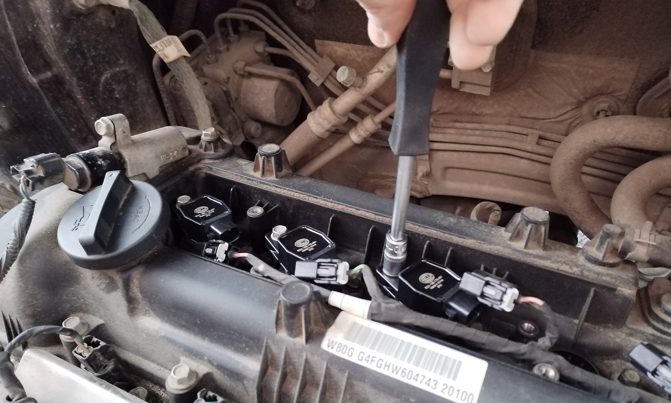 На автомобиле Хендай Крета установлены 4 катушки зажигания. Каждая расположена в свечном колодце головки блока цилиндров и непосредственно соединена со свечой зажигания.