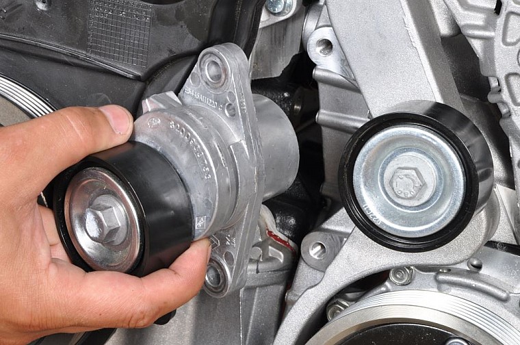 Ремень привода вспомогательных агрегатов не требует регулировки натяжения в течение всего срока службы, так как в его конструкции предусмотрен автоматический натяжитель. Если из-за чрезмерного износа или растяжения ремня натяжитель не в состоянии обеспечить его нормальное натяжение, ремень заменяют.