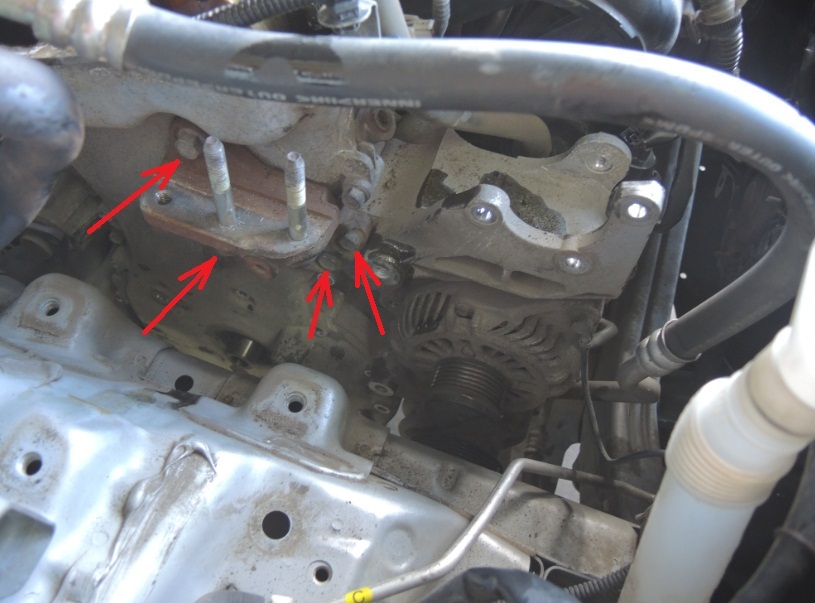 Размещение болтов крепления кронштейна правой опоры двигателя 4B12 Peugeot 4007