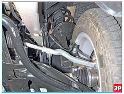 2. Взявшись рукой за штангу стабилизатора рядом с ее точкой крепления к рычагу, резко качаем штангу вверх-вниз.