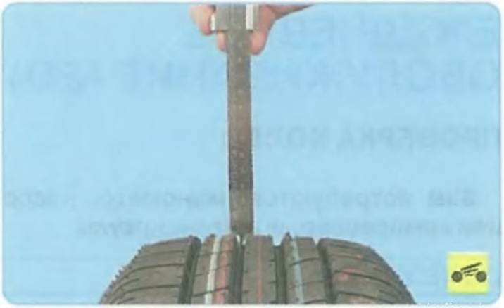 9. Измерьте штангенциркулем остаточную глубину протектора. Если глубина протектора 1,6 мм или меньше, замените шину (для зимних шин остаточная глубина протектора составляет 4,0 мм).