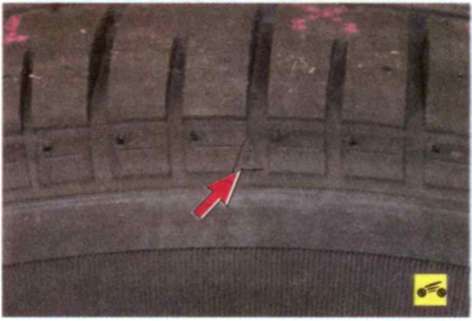 9. Если под рукой нет штангенциркуля, то глубину протектора можно проверить визуально по индикаторам износа шины в виде сплошных поперечных полос на протекторе.