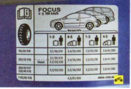 *В холодных шинах, рекомендовано для движения на скорости до 160 км/ч для всех моделей, кроме Focus ST.
