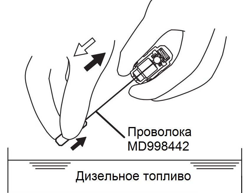 - Специальная проволока для удаления воздуха из гидрокомпенсатора MD998442 (или отрезок закаленной проволоки диаметром 0,5 мм, длиной примерно 100 мм)