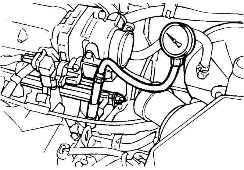 Рис. 2.213. Подключение манометра для измерения давления топлива в системе