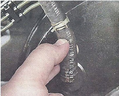 4. Сожмите пассатижами отогнутые усики хомута крепления шланга к штуцеру вакуумного усилителя.