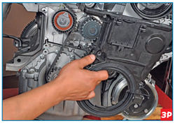 1. Снимаем ремень привода вспомогательных агрегатов и верхнюю крышку привода ГРМ (см. выше).