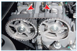 После снятия ремня коленчатый и распределительные валы нельзя поворачивать на большие углы во избежание утыкания клапанов в поршни.