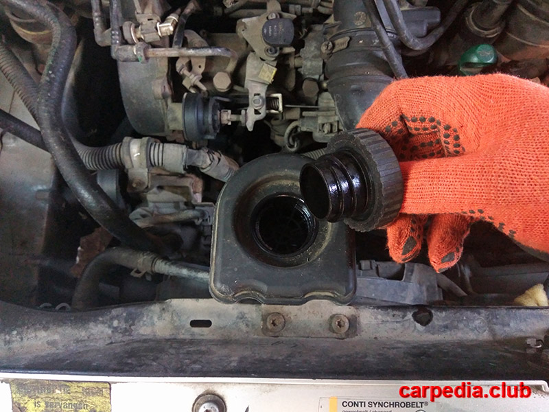Горловина для заливки масла в двигатель расположена спереди моторного отсека.