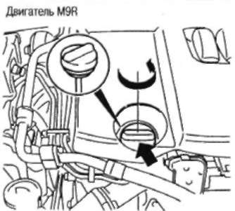 • Модели с двигателем M9R: установите на место крышку маслозаливной горловины двигателя.