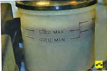 Для контроля уровня жидкости в бачке на его стенки нанесены метки «COLD MIN» и «COLD МАХ», а также «НОТ MIN» и «НОТ МАХ». При холодном двигателе уровень рабочей жидкости должен находиться между метками «COLD MIN» и «COLD МАХ».