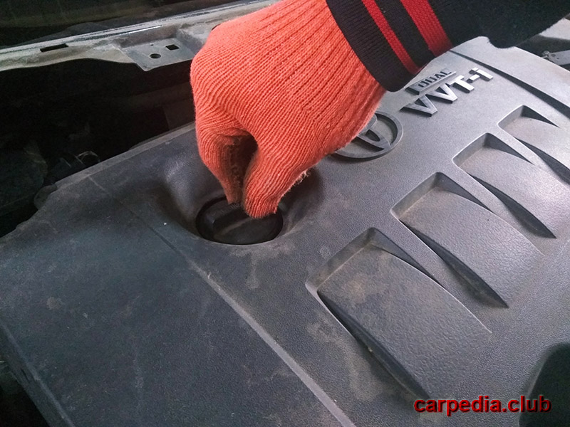 4. Если уровень оказался ниже минимальной отметки (или приближается к ней), необходимо долить моторное масло. Для этого откручиваем пробку маслозаливной горловины.