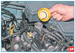 6. Если уровень масла ниже метки MIN, поворачиваем против часовой стрелки и снимаем крышку маслозаливной горловины.