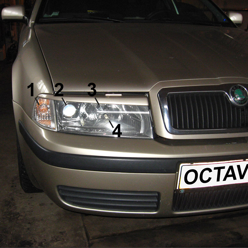 2 – Лампа в передние ходовые огни Шкода Октавиа Тур, тип лампы H3 12V 55W;